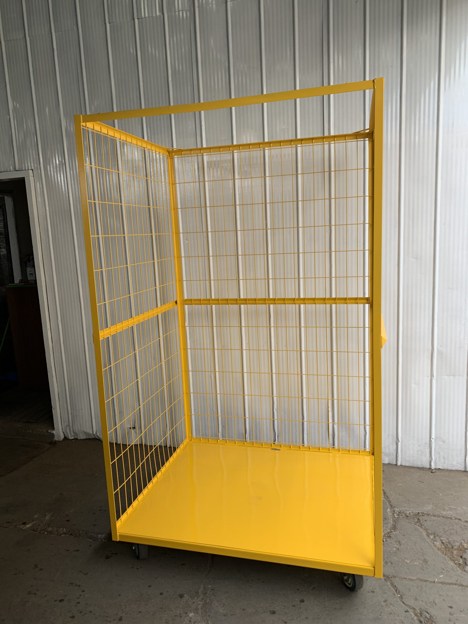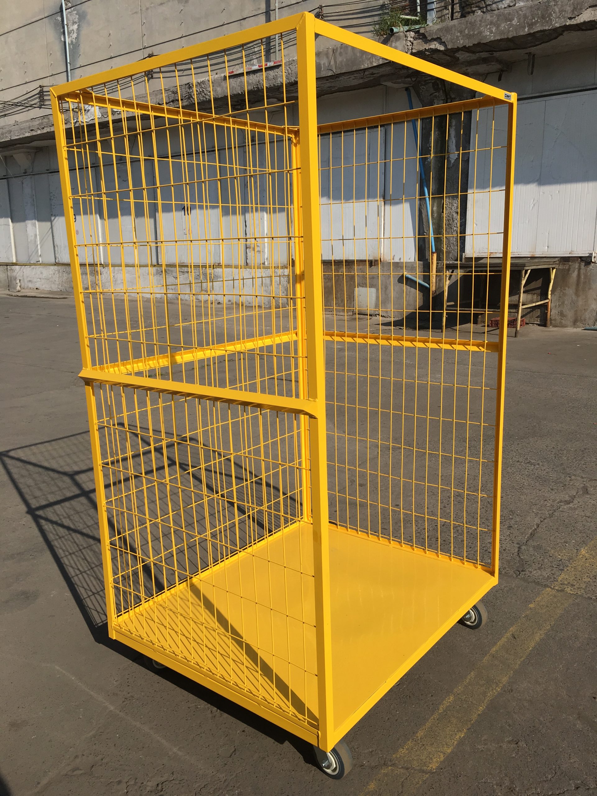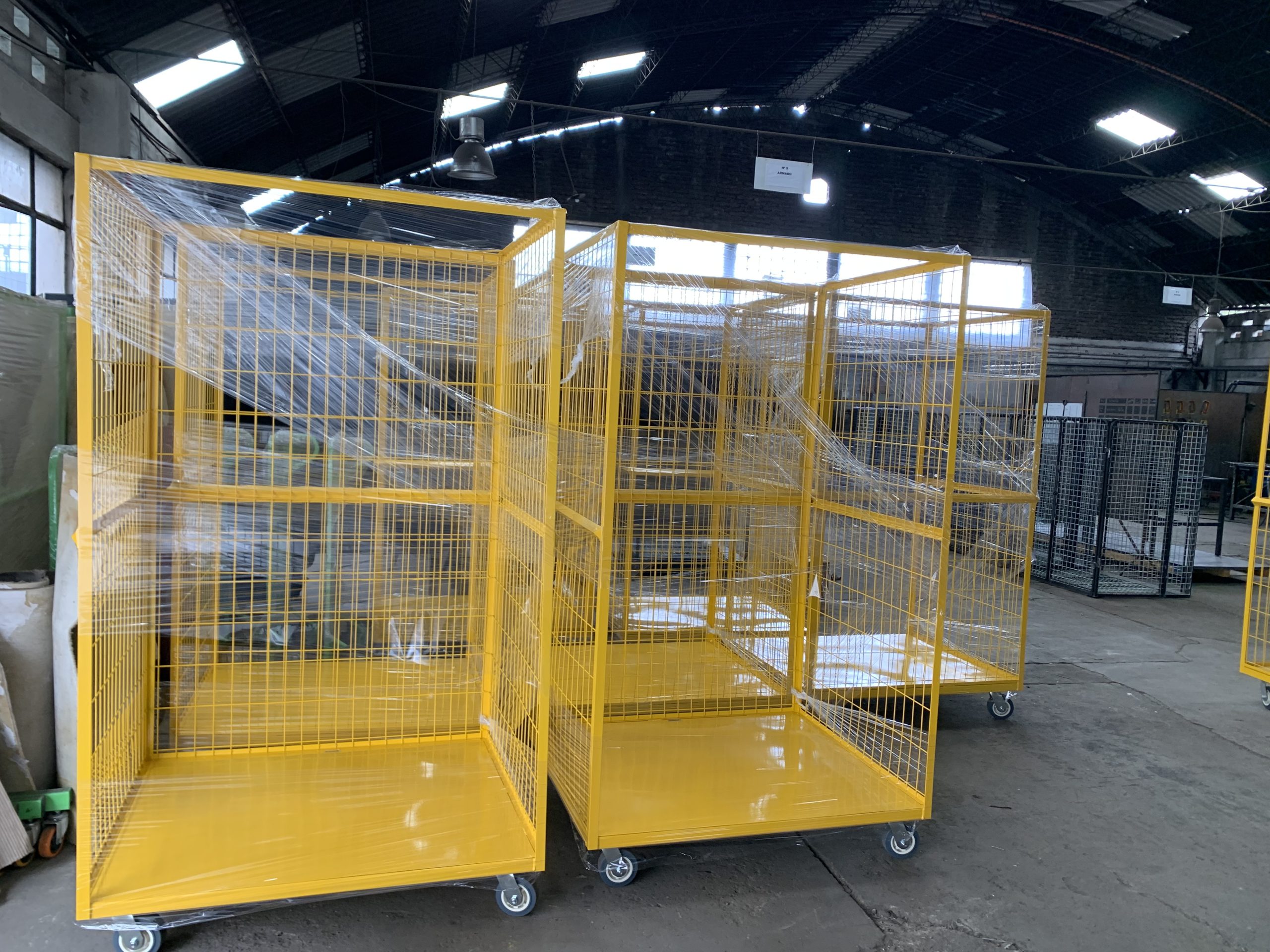 Roll Containers o Roll Trolley fabricado en acero, 3 laterales en malla 150/60. Ruedas 5” 2 fijas y 2 giratorias. Pintura Electrostática.